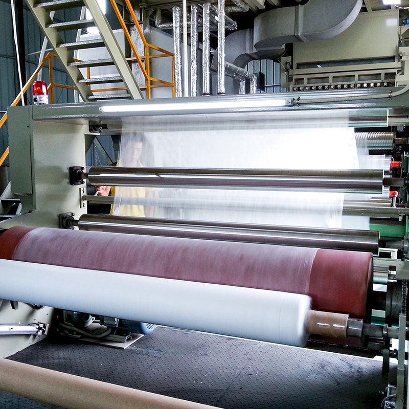 عملية الغزل: يتم نسج الذوبان الملون إلى خيوط بواسطة شعاع الغزل ، مما يشكل الأساس للنسيج غير المنسوج.