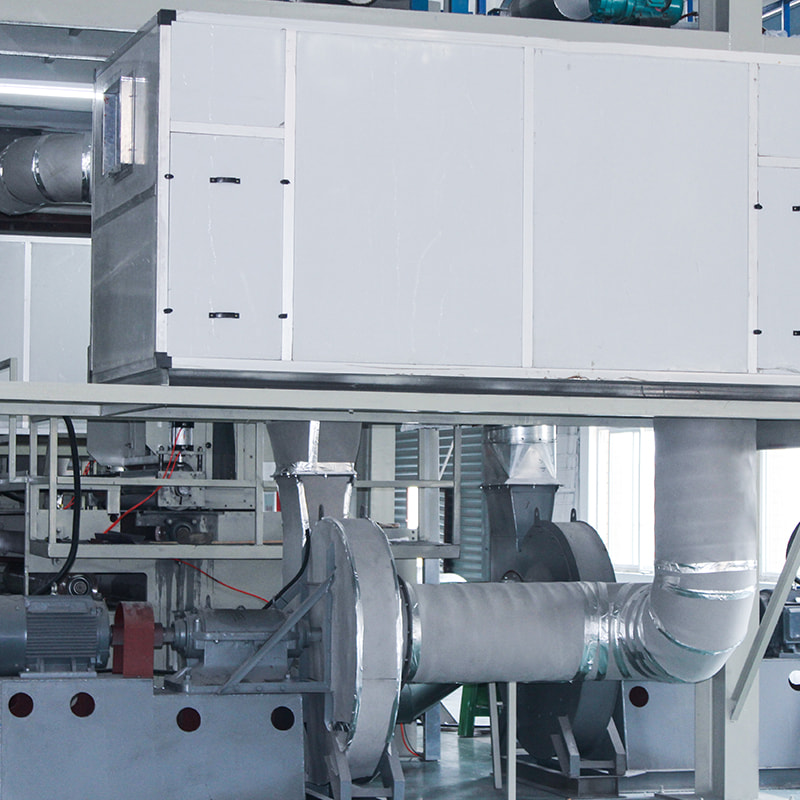 عملية الغزل: يتم نسج الذوبان الملون إلى خيوط بواسطة شعاع الغزل ، مما يشكل الأساس للنسيج غير المنسوج.
