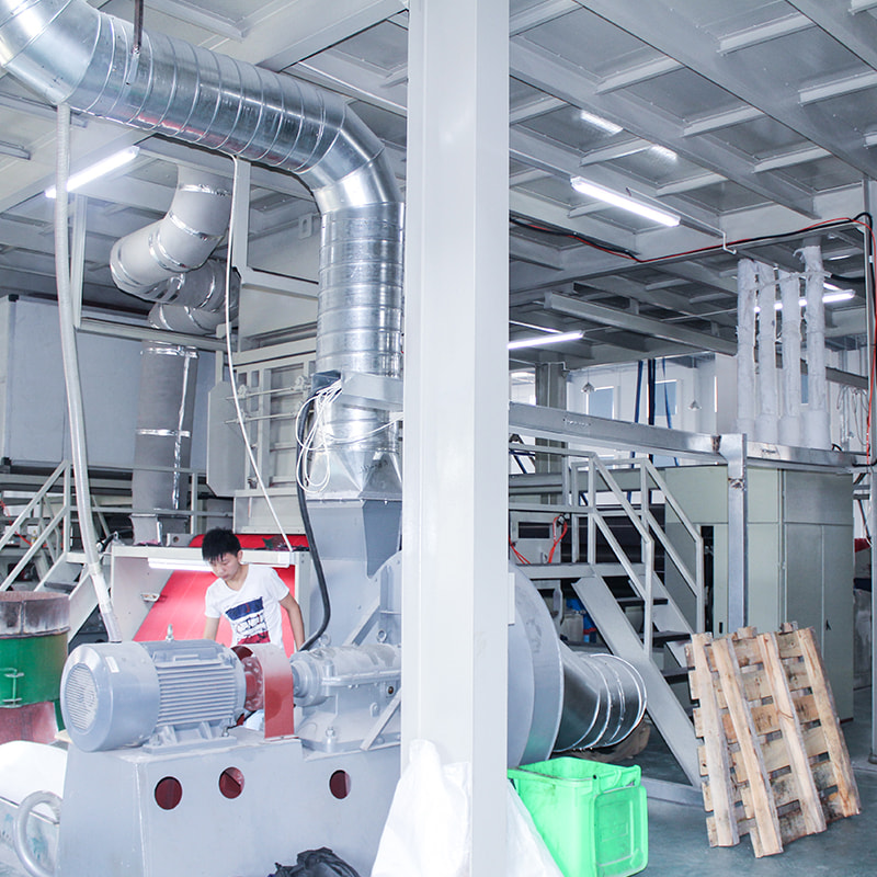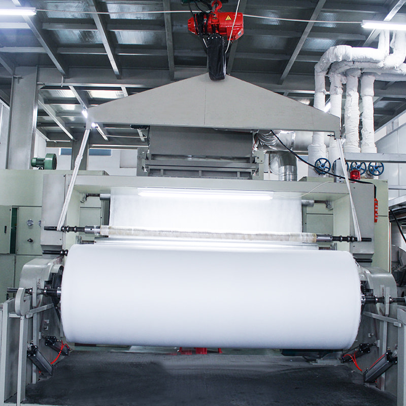 عملية الغزل: يتم نسج الذوبان الملون إلى خيوط بواسطة شعاع الغزل ، مما يشكل الأساس للنسيج غير المنسوج.
