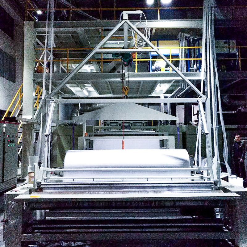 عملية الغزل: يتم نسج الذوبان الملون إلى خيوط بواسطة شعاع الغزل ، مما يشكل الأساس للنسيج غير المنسوج.